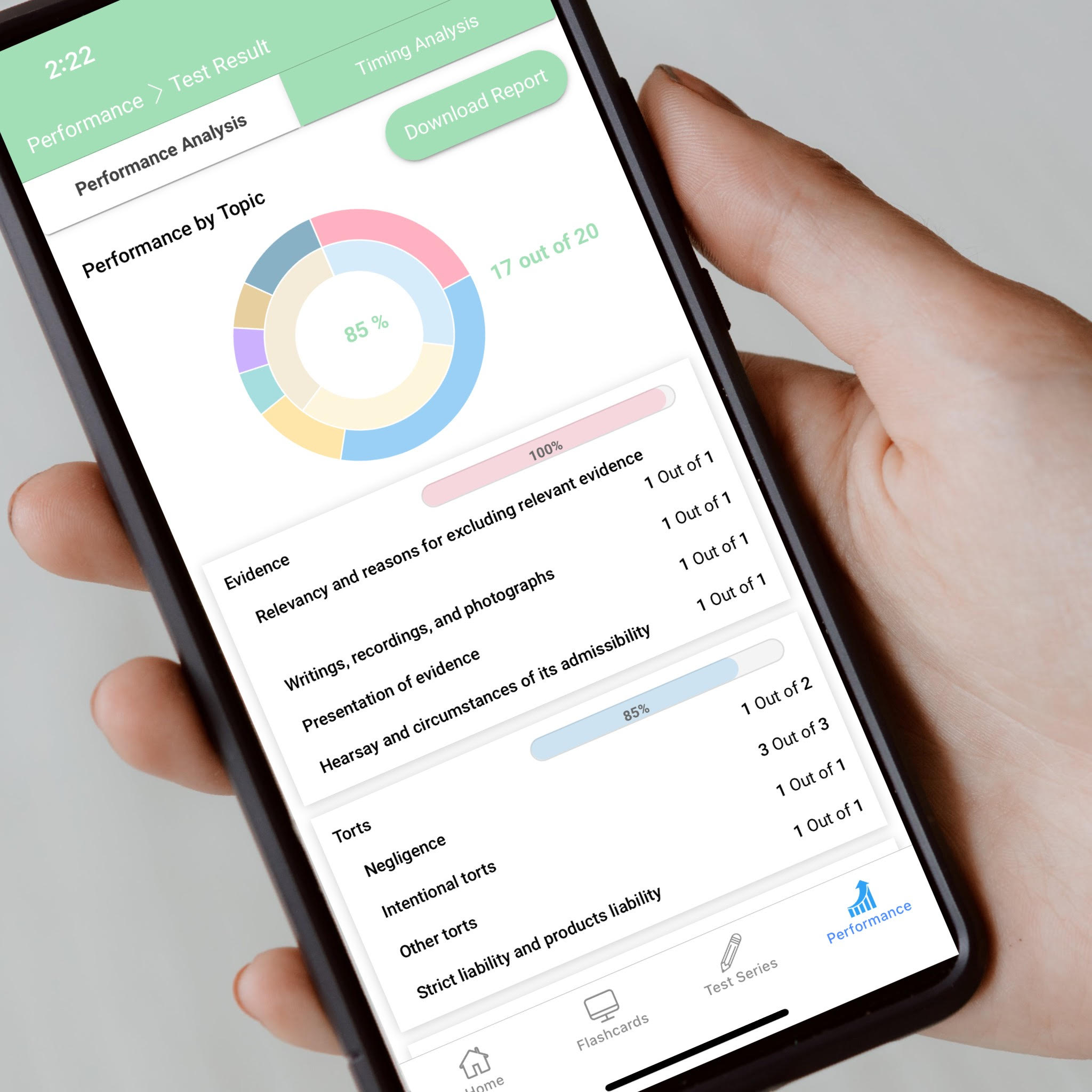 - Track your progress and review your results from every day you study and download a report to review the explanations of questions you answered incorrectly.
